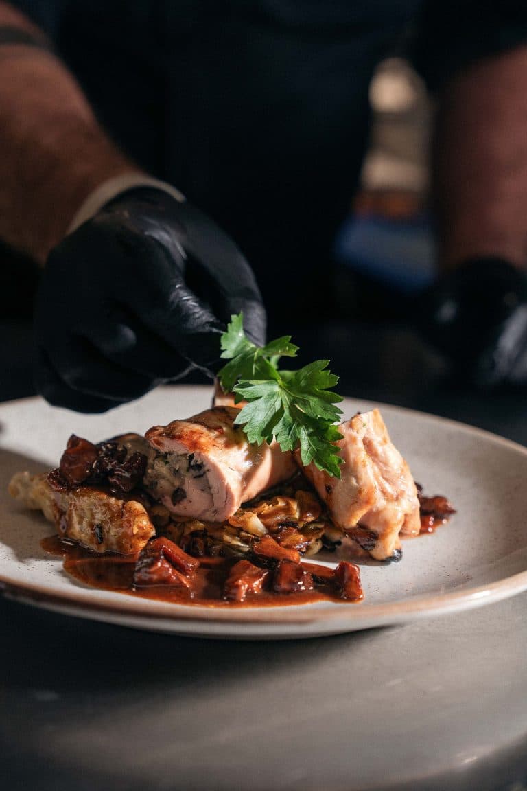 Podkrkonošské maso z farmy Basařovi si sami staříme a připravujeme na X-Oven grilu pro dokonalou chuť. V nabídce nechybí ani lehké vegetariánské variace nebo moderní úprava klasických jídel, jako je zadělávaná kapusta, sýkory nebo domácí knedlík s bylinkami.